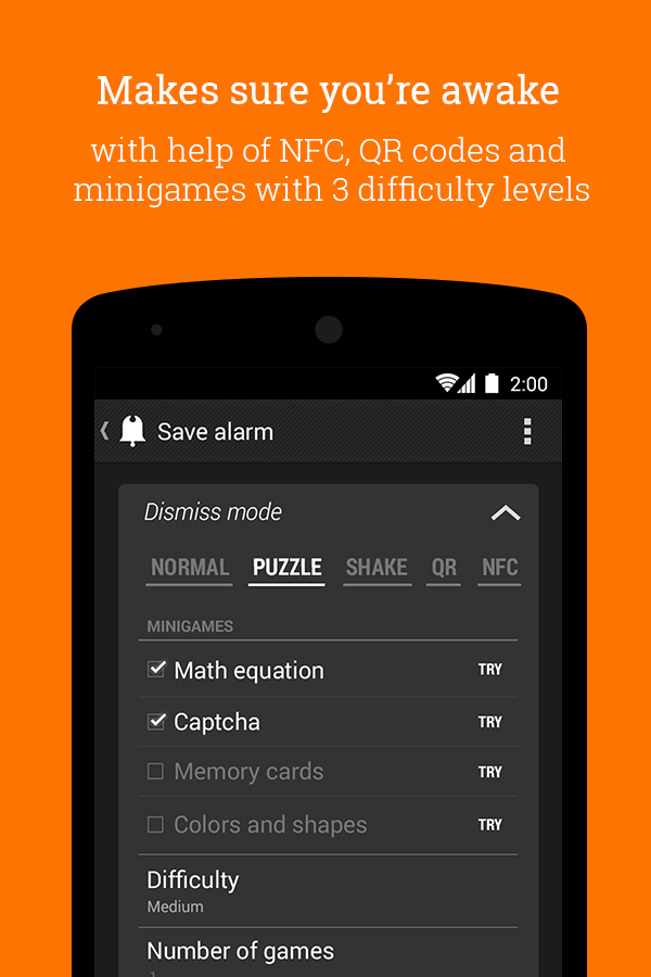 Puzzle alarm clock is quite different from the ones that we reviewed earlier, as it offers you various unique alarm dismiss modes, which is quite interesting. Shake your phone several times to close the alarm or flip to snooze; Puzzle alarm clock is the result of scratching our own itch. Puzzle alarm clock is a free alarm clock app for android that makes you solve a puzzle to stop the alarm. Of course unless you decide to disassemble your device and remove the battery.